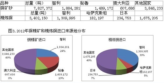 2012年銅精礦和精煉銅主要進(jìn)口來源地