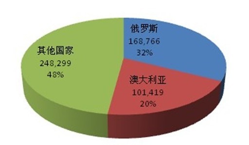 圖6.2012年原鋁進(jìn)口來源地分布