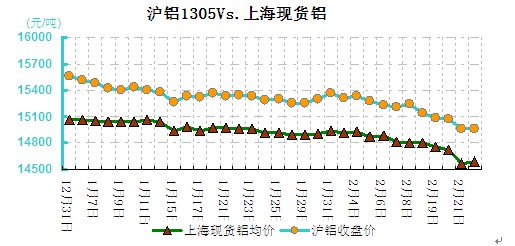 圖二 滬鋁1304VS現(xiàn)貨鋁價(jià)對比走勢圖