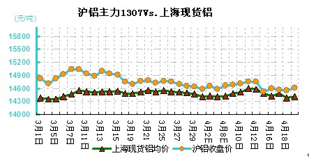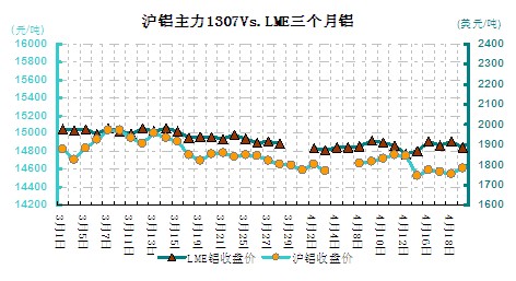 本周(4.15-4.19)鋁價(jià)仍維持弱勢行情。近期市場憂慮情緒較濃,各國公布的經(jīng)濟(jì)數(shù)據(jù)普通較差,對未來經(jīng)濟(jì)前景的擔(dān)憂直接打壓金屬走勢。但鋁價(jià)相比銅,鋅來講,波動和下跌幅度不大,抗跌性明顯。一方面是因?yàn)殇X價(jià)成本線的支撐,另一方面是因?yàn)殇X的金融屬性較弱,使得對市場的敏感性較弱。從周均價(jià)看,LME倫鋁環(huán)比上漲0.07%,滬鋁主力合約環(huán)比下跌0.84%。