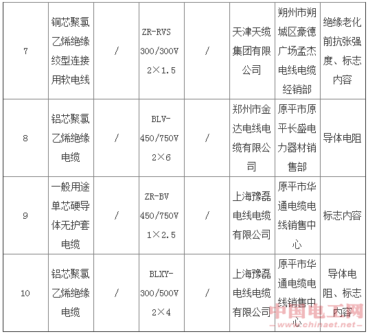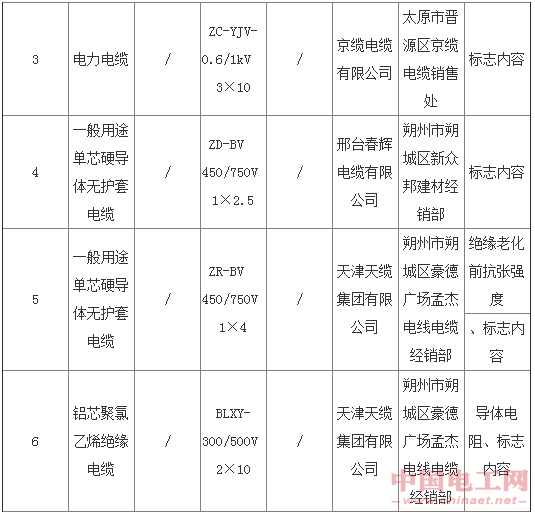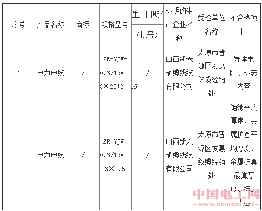 山西電纜據(jù)悉,此輪抽檢涉及山西省28家生產(chǎn)經(jīng)銷單位(其中生產(chǎn)企業(yè)21家,經(jīng)銷單位7家)的46個批次的產(chǎn)品,包括聚氯乙烯絕緣電纜電線33個批次,電力電纜13個批次。其中,不合格的電線電纜產(chǎn)品為10批次(其中聚氯乙烯絕緣電纜電線7個批次,電力電纜3個批次),不合格率為21.7%。