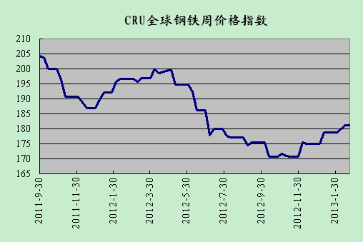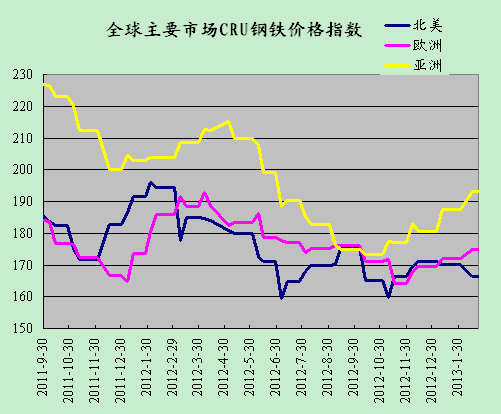 (關(guān)鍵字:CRU 國(guó)際鋼鐵價(jià)格指數(shù) 歐洲 北美 亞洲)