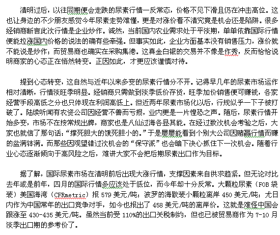 中商網尿素日評: 市場仍處穩(wěn)中堅挺