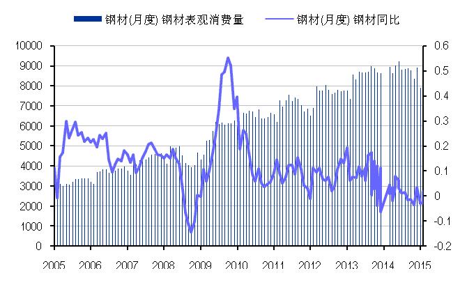 四年前我提出了我國鋼鐵需求已經(jīng)進入了高消費、低增長的歷史時期,僅僅兩年多,到2014年我國粗鋼消費就出現(xiàn)了同比回落趨勢。經(jīng)濟增長回落態(tài)勢和固定資產(chǎn)投資增速回落是影響鋼材消費的主要因素。去年我國經(jīng)濟GDP增長為7.4%,今年預計在7.0%。2014年全國固定資產(chǎn)投資50.2萬億元,同比增長15.7%,這一增速是自2002年來的最低增速。2015年1-6月,全國固定資產(chǎn)投資累計達到237132 億元,同比增長11.4%。與去年增速相比有著明顯的回落。增加潛在需求領域的固定資產(chǎn)投資仍是我國經(jīng)濟穩(wěn)定的重要支撐。中央只能在鐵路公路、民生、環(huán)保領域加大投資力度,穩(wěn)定經(jīng)濟,但是畢竟這個投資領域范圍有限。如果你看到包括鋼鐵行業(yè)在內(nèi)的制造業(yè)等產(chǎn)能過剩行業(yè)投資已經(jīng)大幅萎縮,就不難理解這種社會投資增速已經(jīng)很不容易了。