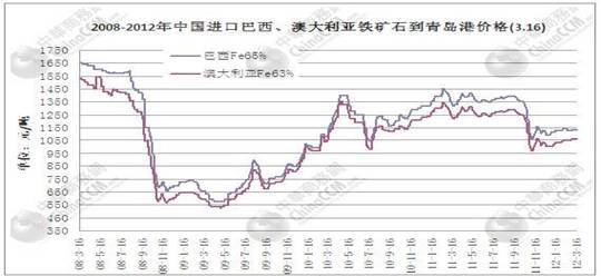 歷史上,鐵礦石和鋼材價格幾乎同時出現(xiàn)市場價格的漲落行情中。并不斷推高鐵礦石價格,擠壓鋼廠的利潤。不過需要說明的是,2011年下半年國際金融債務(wù)危機的爆發(fā),拖累經(jīng)濟再次陷入疲軟境地。影響世界鋼材和鐵礦石的需求。