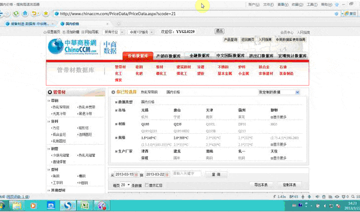 中商數(shù)據(jù)庫是中華商務(wù)網(wǎng)最新研發(fā)的信息資訊產(chǎn)品,集成了數(shù)據(jù)信息查詢、分析、定制、下載等多項功能。能為用戶提供國內(nèi)價格、國際價格、期貨價格、海運費價格、港口價格、庫存數(shù)據(jù)、產(chǎn)銷量數(shù)據(jù)、進(jìn)出口數(shù)據(jù)、財務(wù)數(shù)據(jù)、銀行數(shù)據(jù)等十余種數(shù)據(jù)類型的數(shù)據(jù)信息服務(wù)。涵蓋了十八大行業(yè)的七百余種大宗商品。